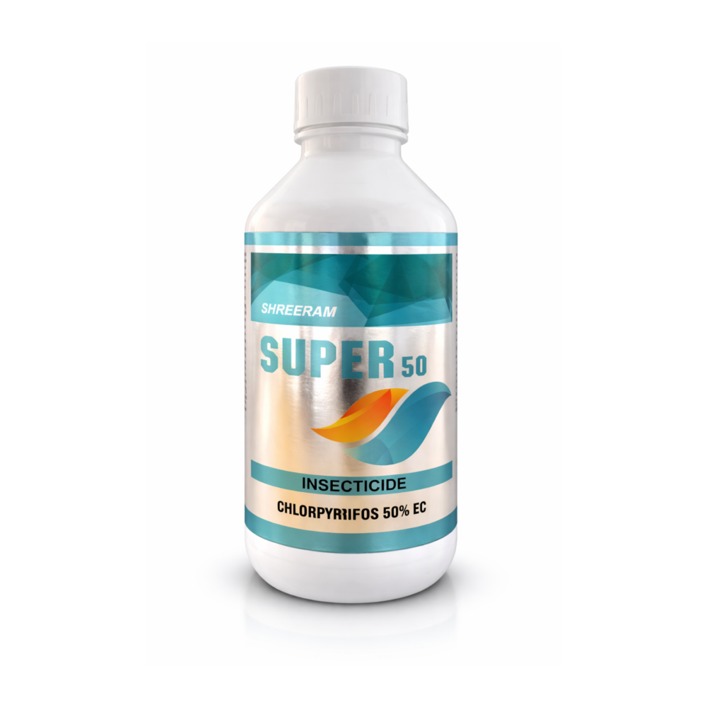 "कीड़ों पर सीधा प्रहार, सुपर 50 का दमदार वार।" पैकिंग: 500ml और 1 लीटर की बोतलों में उपलब्ध।